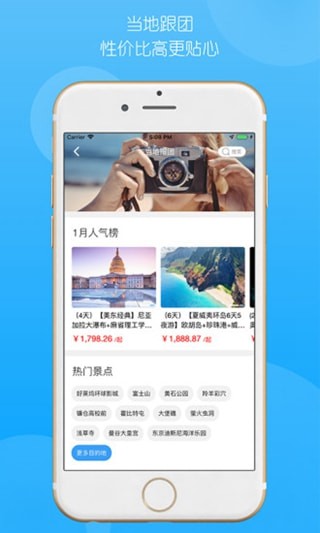 输入旅游目的地的名称,APP就会给您提供对应的旅游产品信息,包括当地天气、货币汇率等实用资讯。