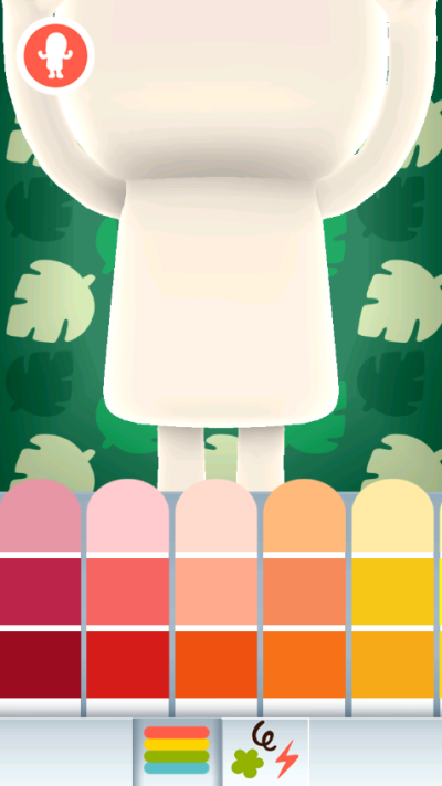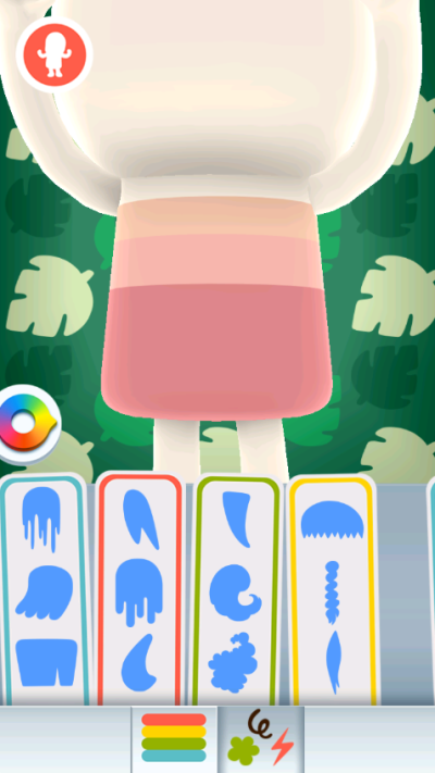 接下来,玩家可以点击这个空白角色,开始为它添加颜色、五官和其他装饰。游戏的操作非常简单直观,点击哪个部位就能装饰哪个部位。例如,点击手臂后,你可以选择不同的装饰元素,完成后只需点击屏幕任意位置即可确认。如果想查看角色的整体效果,还可以旋转角色,从不同角度欣赏你的作品。