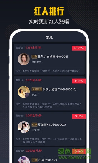 小葫芦红人坊app是一款专为网红达人量身打造的流量变现平台,旨在帮助各大社交平台的红人实现商业价值最大化。通过该平台,红人们可以轻松进行时间交易,粉丝则能享受多样化互动服务。平台不仅提供实时更新的红人排行榜,还详细记录每位用户的交易历史,让数据透明化。此外,平台还持续推出超值福利活动,为用户带来更多惊喜体验。现在就前往绿色资源网下载,开启您的红人经济之旅吧!