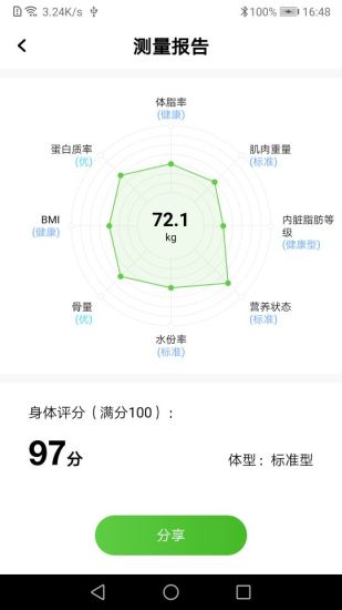 您的体脂数据管理专家,可以跟踪体重,BMI,体脂含量,水份含量,卡路里消耗,骨骼含量,肌肉含量,内脏脂肪等数据。通过专业算法分析,为您生成详细的身体成分报告,让您全面掌握健康状况。我们将引入更多的工具和服务,以指导你减肥,或者使身体更加健康。未来还将增加运动指导、饮食建议等增值服务,打造全方位的健康管理平台。