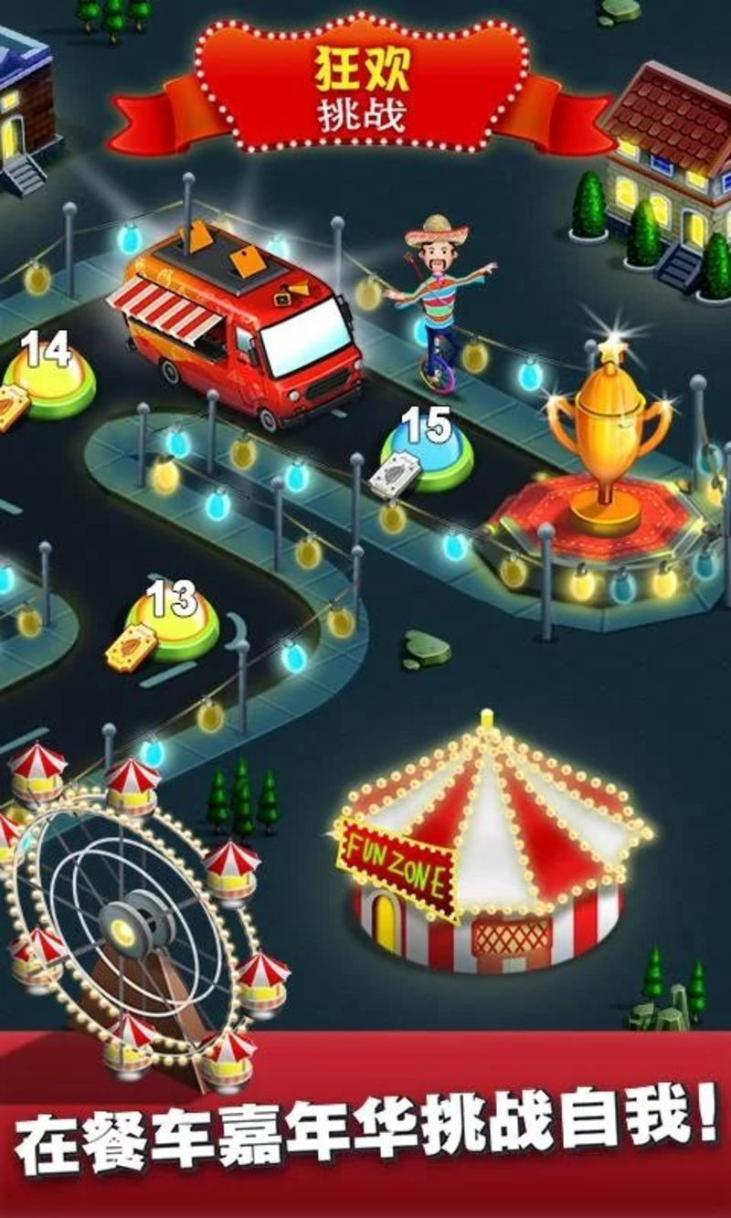 《餐车厨师:烹饪FoodTruckChef》是一款极具创意的模拟经营类游戏,让你体验环球美食之旅的无限乐趣。驾驶你的专属餐车周游世界,从纽约的热狗摊到意大利的披萨店,每个城市都有独特的食材和烹饪方式等待你去探索。游戏提供上百种食材和数十种厨房设备,让你可以随心所欲地创造令人惊艳的各国料理。通过不断升级餐车设备和解锁新功能,你的烹饪效率将大幅提升,还能为餐车添加个性化装饰,打造独一无二的美食品牌。这款游戏将完美融合烹饪乐趣与经营策略,让你在轻松愉快的氛围中感受成为顶级餐车大厨的成就感。