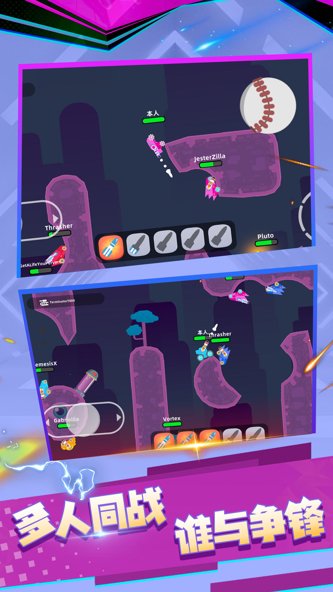 这是一款极具策略性的迷你坦克对战游戏。玩家需要精准操控自己的坦克,从不同角度发射炮弹攻击敌人。游戏特别设计了物理弹道系统,玩家可以巧妙利用地形反弹炮弹,甚至通过炮弹的后坐力实现跳跃移动。多样化的战场地形不仅提供了战术掩护,还能创造出意想不到的攻击路线。无论是单人挑战还是多人对战,都能体验到紧张刺激的坦克对决乐趣。