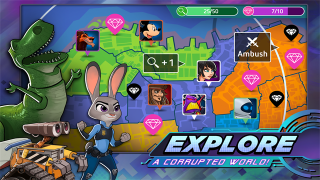 只有你能拯救梦幻城!在这场史诗般的冒险中,你将面对前所未有的挑战,成为迪士尼世界的最后希望。这次不需要斗篷也能参战,所有角色都能以独特的方式展现他们的勇气与力量。组队完成任务使命与特别战役,与好友一起制定战术,共同对抗强大的敌人。使用超凡技能与装备升级你的角色,解锁隐藏能力,打造属于你的最强战士。探索全新数字世界,拯救英雄伙伴,揭开隐藏在像素背后的秘密。欢迎来到数字梦幻城…抓紧时间,享受游戏带来的无限乐趣。组建最佳战队,穿戴强大装备,于危机之中拯救你的英雄伙伴,证明你的领导才能。一种邪恶的病毒在感染每一个像素,就连英雄们的亲朋好友也都反目成仇,你必须阻止这场灾难的蔓延。