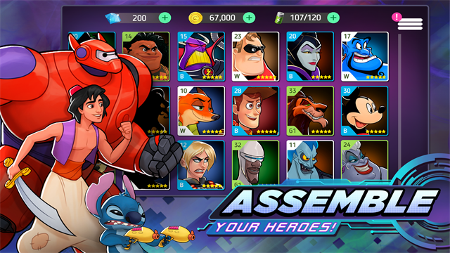 打开游戏后点击战役即可进行冒险,进入一个充满未知与挑战的迪士尼世界。选择自己需要挑战的章节以及关卡,每个关卡都有独特的设计和敌人配置。你的每一次挑战都将会消耗掉部分体力,合理分配资源是取得胜利的关键。英雄都选择好了之后便可以点击战斗按钮,进入紧张刺激的对决环节。点击一下英雄即可释放最强技能,把握时机才能发挥最大威力。