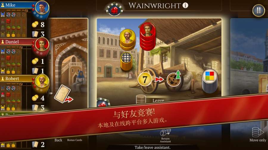 游戏的核心玩法极具特色,你将带领一位商人和四位助手在16个不同的集市地点间穿梭。每个地点都提供独特的行动机会,但要想执行某个行动,你必须将商人和一位助手同时移动到该地点,并将助手留在那里处理具体事务。这种独特的机制要求玩家必须提前做好周密规划,因为一旦助手被分散在各个地点,你就需要花费额外的行动来重新集结他们。这种设计大大提升了游戏的策略深度,让每一局游戏都充满变数和挑战。