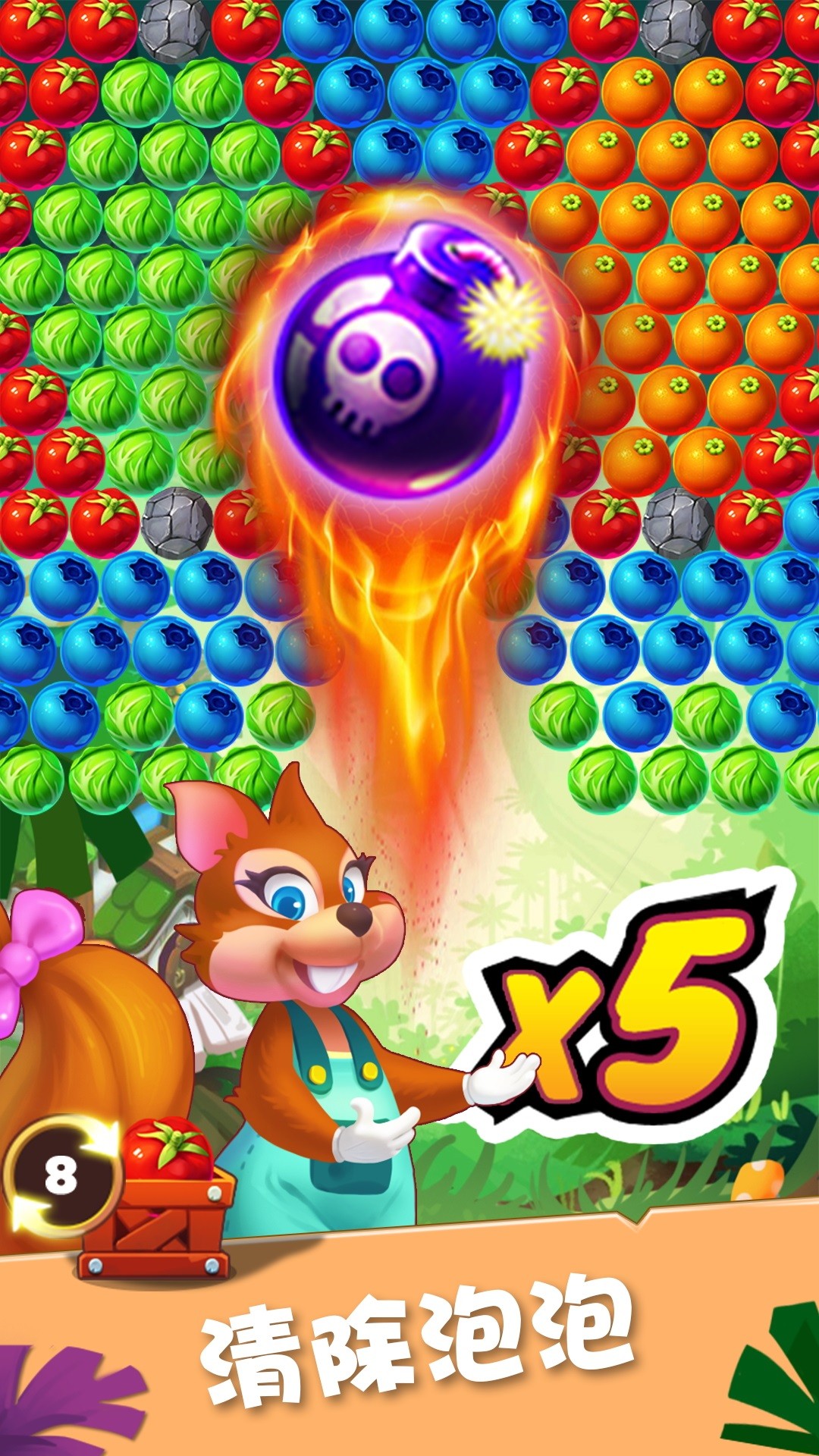 利用炸弹可以清除大片泡泡,藤条能帮你改变泡泡轨迹,火箭则能直接命中目标位置;