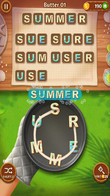 字可以是垂直,水平,对角线甚至向后,只需在一个字上滑动即可选择它;游戏采用直观的触控操作,让你轻松找到隐藏单词。如果您发现有效字词,它将保持突出显示,并在单词列表中标记为已找到;系统会自动记录你的进度,方便随时查看。从混合字母发现隐藏的单词;每个关卡都经过精心设计,确保挑战性和趣味性并存。从主要词语中查找衍生词语,并培养你的大脑和词汇技能;这种独特的玩法能有效提升你的语言能力。视觉上喜欢玩各种各样的饼干;游戏还提供了丰富的主题和皮肤可供选择。通过增加更多的饼干感觉成就与增加点;完成挑战可获得丰厚奖励,激励你不断进步。易用;简洁的界面设计让新手也能快速上手。每日奖励奖励;坚持登录还能领取额外惊喜。在第一场比赛免费200硬币支付。