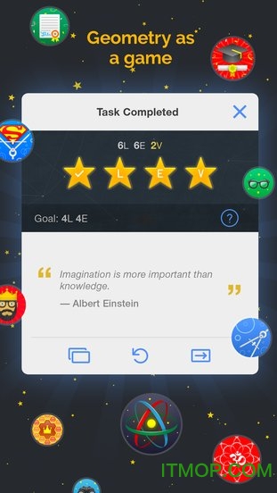 欧式几何破解版是一款基于古希腊数学家欧几里得经典理论开发的益智游戏。游戏通过精心设计的几何关卡,让玩家在轻松愉悦的氛围中探索几何学的奥秘。120个由浅入深的关卡设置,既适合初学者入门,又能满足数学爱好者的挑战需求。游戏采用独特的评分系统,鼓励玩家用最简洁的步骤完成几何构造,培养逻辑思维能力。精美的界面设计和流畅的操作体验,让抽象的几何概念变得生动有趣。