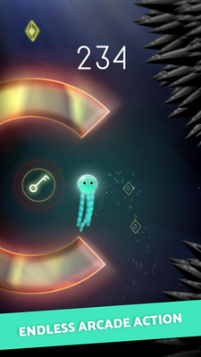 在《深海狂奔》中,玩家将化身为一只灵动的小水母,在浩瀚的深海世界中自由遨游。通过简单的触控操作,点击屏幕左右两侧即可控制水母向上游动,松开手指则会自然下沉。游戏采用经典的跑酷玩法,游得越远获得的分数就越高。但要注意,这片看似美丽的深海中暗藏杀机,各种危险的海洋生物和致命陷阱随时可能让你前功尽弃。最刺激的是,金币和加速buff等珍贵道具往往设置在靠近尖刺的危险区域,想要收集它们需要过人的胆识和精准的操作技巧。