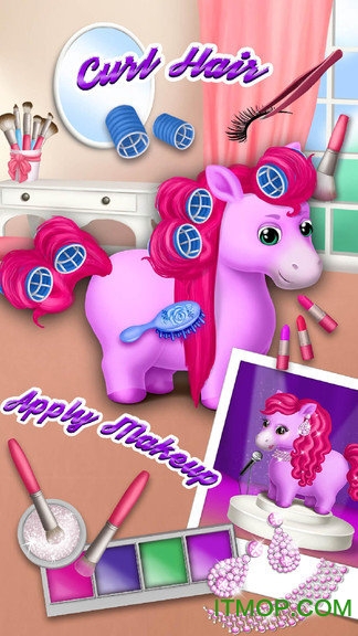游戏提供了丰富多样的互动体验:玩家可以每天登录游戏,通过完成造型任务收集可爱的奖杯奖励;使用专业的发廊工具为小马们进行洗发、染发、剪发、卷发等全套美发服务;为不同的小马打造专属风格,包括公主风、独角兽风、斑马风、流行音乐风以及西部牛仔风等。