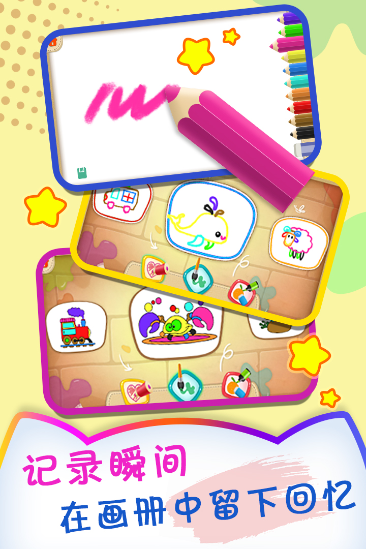 在游戏中,小朋友们可以尽情释放创造力,通过简单的触控操作就能完成各种绘画作品,操作界面特别为儿童设计,确保使用安全便捷;游戏不仅能提高孩子们对色彩的认知能力,还能培养他们的专注力和手眼协调能力,在快乐中收获成长;孩子们可以充分发挥天马行空的想象力,创作出充满童趣的作品,游戏提供多种绘画工具,包括彩色铅笔、蜡笔、水彩笔等,让小朋友体验不同的绘画效果。家长还可以将孩子的作品保存下来,记录成长点滴。