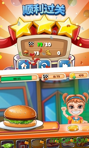 每完成一个汉堡制作都会得到相应的金币奖励金币要累积起来喔可以解锁更豪华店面让你的餐厅改头换面。金币还可以用来购买特殊装饰品,打造独一无二的汉堡店风格,吸引更多顾客光临。