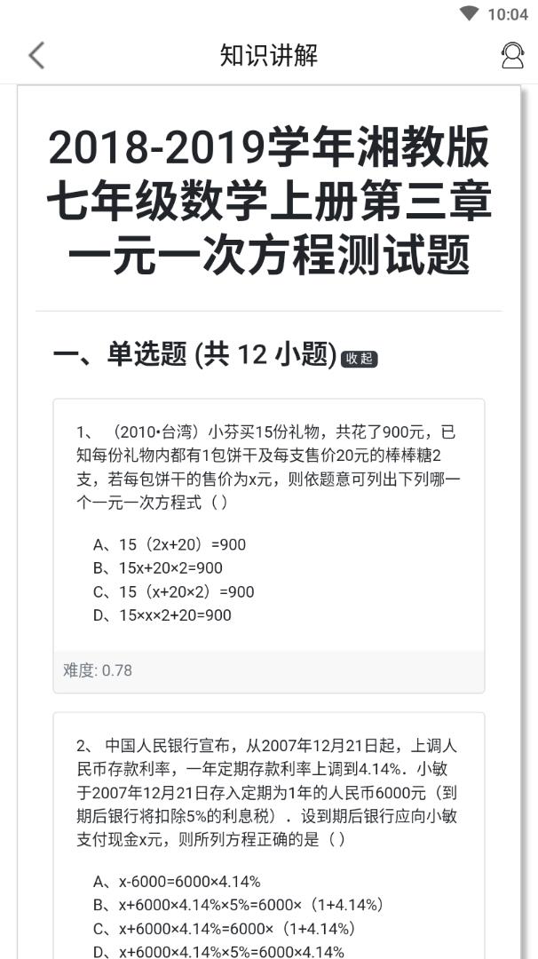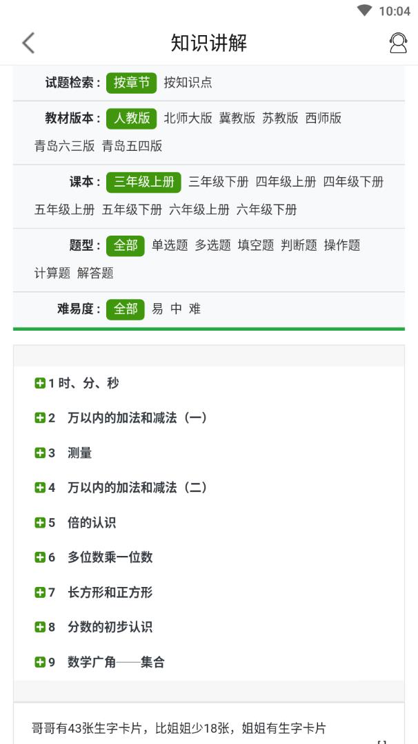 学科题库功能是精选资料app的一大亮点。所有试题都经过专业教师团队严格筛选,确保题目质量。每道题目都配有详细的解析过程,帮助学生理解解题思路。同时,app还提供知识点讲解功能,将教材内容按照章节、版本、题型、难易度等条件进行分类,让学生能够有针对性地进行复习和练习。
