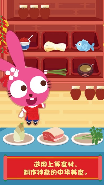 有简介易上手的操作界面,制作十种中华美食,超过50种的常见食材。游戏操作简单直观,适合3-8岁儿童使用,通过丰富的食材和菜式,培养孩子的认知能力和动手能力。