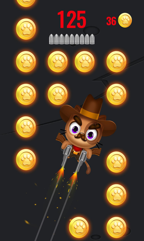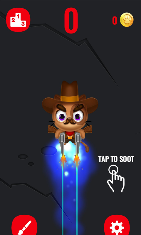 轻触屏幕即可发射子弹,利用反作用力推动猫咪向上飞行。射击时机和角度直接影响飞行轨迹,需要根据场景灵活调整。沿途收集的金币可用于解锁新武器和炫酷皮肤,让每次飞行都充满惊喜。