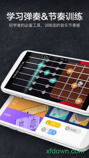 吉他模拟器(Finger guitar)是一个简单的吉他模拟器、吉他软件和音乐辅助练习应用程序,和弦天天更新,身边的吉他教学、吉他教程,让您轻松学习吉他弹奏技能,完成吉他自学
