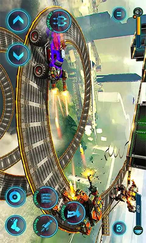在这个危机四伏的未来都市中,玩家将扮演人类最后的希望。游戏中的飞行突变体装备了最先进的未来武器,它们是人类对抗机械怪物的终极战争机器。玩家可以随时将机甲变身为飞行形态,化身为翱翔天际的战斗机,为拯救城市而战。真实的钢铁战车能够发射威力巨大的导弹,而巨型怪物卡车则可以变身为红色机器人,在有限的燃料下完成不可能的太空飞行任务。每场战斗结束后,玩家还需要精准操控激光机枪,在复杂的轨道上完成安全着陆。