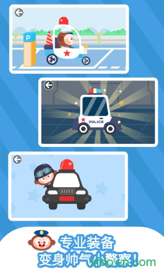 酷酷装备:游戏提供了全套警察装备,包括帅气的警服、防护头盔、专业手铐、对讲机等,还有多种款式的警车可供选择,让小朋友们可以打造属于自己的独特警察形象。