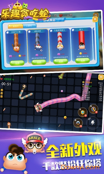游戏提供了上百种风格各异的皮肤选择,从呆萌可爱的卡通形象到炫酷拉风的未来科技风应有尽有。这些皮肤不仅外观独特,部分还带有特殊效果和动画,让你的贪吃蛇在战场上更加引人注目。通过游戏内活动和成就系统,玩家可以免费解锁大量精美皮肤,满足个性化展示的需求。