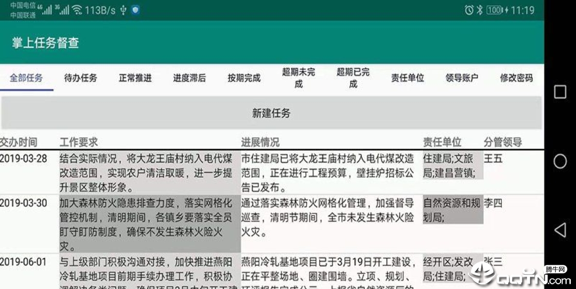 创建完成后,管理员需将生成的责任单位账号信息分发给相应负责人。责任单位负责人使用获得的账号登录系统后,即可查看本单位负责的所有任务项目。在任务详情页面,负责人可以实时更新任务进展,提交进度报告。
