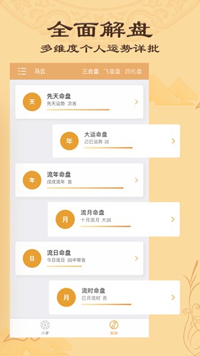 5. 个性化命理服务:提供取名改名、择吉日、风水布局等衍生功能,用户可根据需求选择特定模块,获取定制化的命理解决方案。