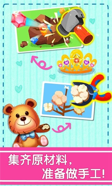 游戏通过趣味互动的方式,引导孩子学习手工制作的基本流程。从原材料准备到成品包装,每个步骤都设计成简单有趣的迷你游戏。系统会提供详细的语音指导和动画演示,即使是初次接触的小朋友也能轻松上手。