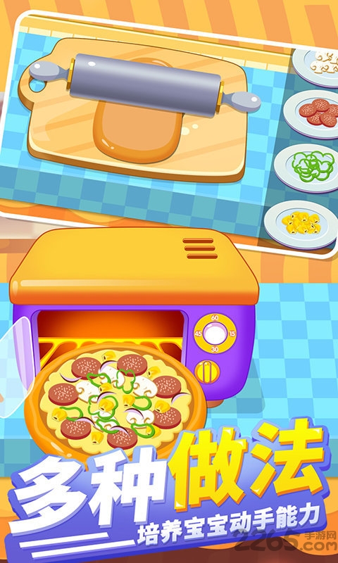 丰富的美食世界:从香喷喷的披萨到美味的汉堡,从可口的意大利面到诱人的甜点,数十种世界美食等待小朋友来探索制作!