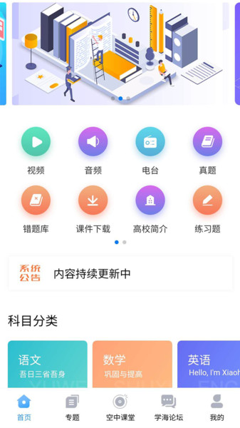 针对高三学生提供1-3轮系统复习课程共计1400节,覆盖所有高考考点;完整收录2015-2019年全国I、II、III卷各科真题讲解,帮助学生把握命题规律;新增初高中衔接课程230多节,实现知识平稳过渡;同步更新高一高二全科随堂课程2100多节,与学校教学进度保持一致;每节课后设置5道精选练习题,通过即时反馈强化学习效果。平台还新增错题本功能,自动收录练习中的错题,方便针对性复习。