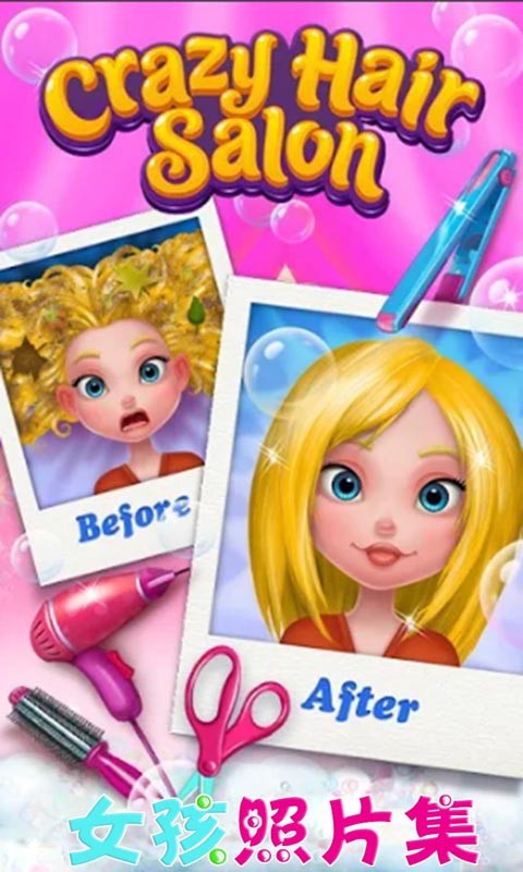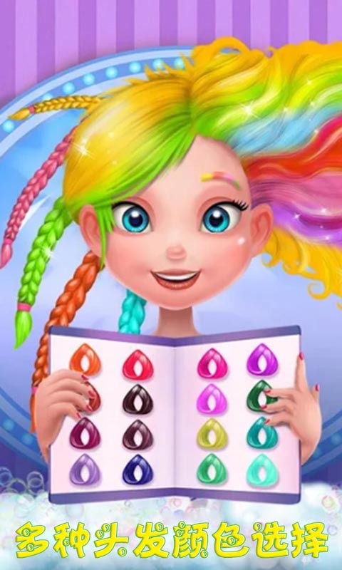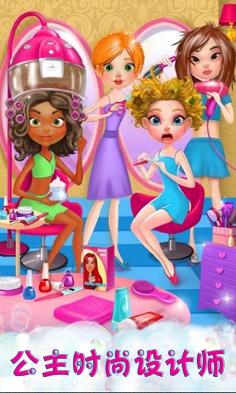 多种多样的游戏场景之中,为自己的公主们去洗头发,去梳头发,去染头发等等。每个场景都有相应的互动元素。