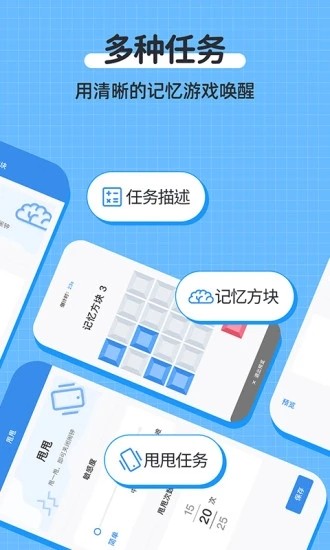 ·创新的防贪睡机制要求完成指定任务才能关闭闹钟,确保您真正清醒起床,告别赖床困扰