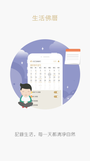 健康日历:除了提供各种传统节日的提醒外,还能帮助用户规划个人修行计划,设置每日冥想、阅读等活动的提醒。