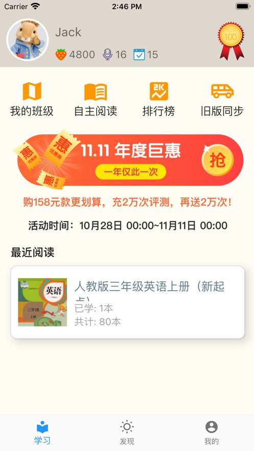 趣趣英语把这门课程搬到app上,让小朋友们通过闯关的模式掌握自然拼读(phonics)、常见词(sightwords)、分级读物、桥梁书、英语小说的阅读练习。应用采用智能算法,会根据孩子的学习进度自动调整难度,确保每个孩子都能获得个性化的学习体验。丰富的互动元素和即时反馈机制,让学习过程充满成就感。