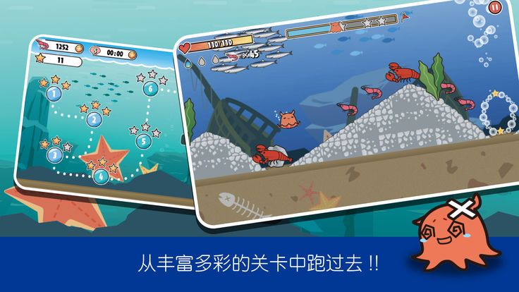 无限关卡上没有终点,而在无限关卡中路线都是随机的。每一个月的分数排行榜,即领先的距离,虾的捕捉数,技能的使用数等,各种各样的要素计算得分。排名前位的人会有一份珍珠礼物!
