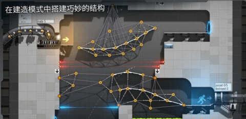 游戏最引人入胜之处在于其极具创意的关卡设计。每个测试室都呈现出独特的挑战场景,从简单的桥梁搭建到复杂的多阶段机关解谜,难度曲线设计合理,让玩家在循序渐进中不断提升建造技巧。关卡中还隐藏着许多惊喜元素,等待玩家发掘。