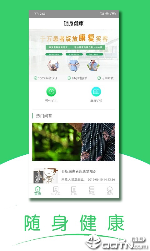 护工在线免费注册功能让专业护理人员可以快速入驻平台,为用户提供更多选择;一键预约护工功能简化了服务流程,用户可根据需求快速匹配附近护工;基础护理用品订购服务覆盖各类日常康复用品,支持在线选购并配送到家。此外,软件还提供康复知识库和在线咨询服务,帮助用户获取专业的康复指导。