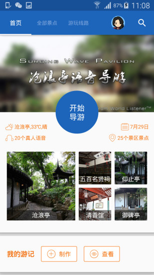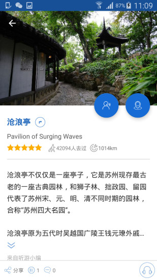 沧浪亭导游是将语音导游、门票信息、旅游攻略、景点美图、旅游足迹等全面集中展现;应用采用智能算法,能根据游客的停留时间和兴趣偏好,动态调整解说内容。无论是园林建筑细节还是历史典故,都能获得专业级的讲解服务。