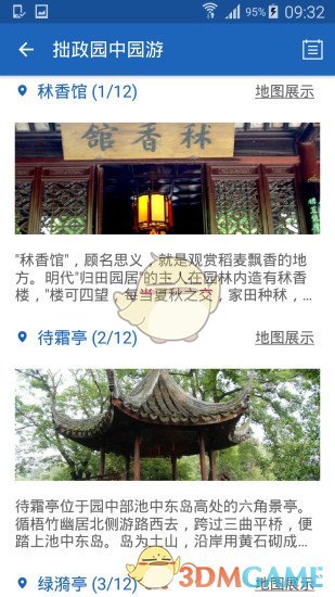攻略:收录了最全面的游园实用信息,包括景区开放时间、最佳游览季节、特色美食推荐等,更有实时人流量显示功能,帮助您避开拥挤时段。