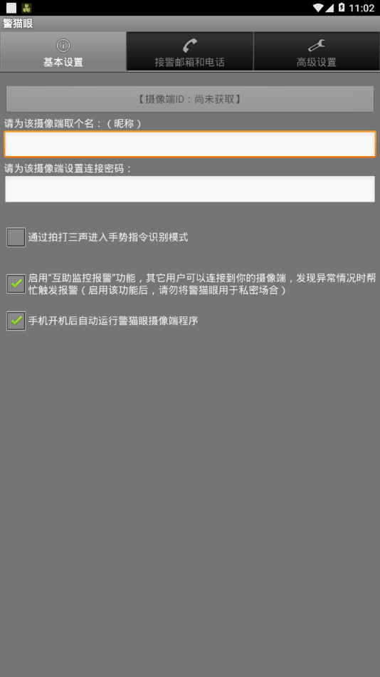 在闲置安卓手机上安装并运行"警猫眼"摄像端程序,点击"布防"按钮启动监控模式,联网后系统会自动分配唯一摄像端ID并显示在标题栏。观看端操作同样简单:在常用设备上安装观看端程序,输入摄像端ID即可建立安全连接。软件支持多设备同时观看,并可根据网络状况自动调节画质,确保监控流畅稳定。首次使用提供详细引导教程,让您快速掌握各项功能设置。