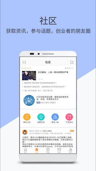 青伙App运营人员会定时更新话题,所发布话题都会是与身边发生的创业事件或资讯等相关,让创业者相互之间可以交流和讨论各自的观点。这些话题涵盖创业政策解读、行业趋势分析、创业经验分享等多个方面,帮助创业者拓展视野、获取灵感。