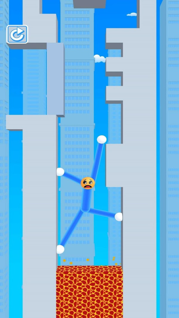 每个等级需要拉长一个人的四肢才能顺利向上爬升。随着关卡推进,玩家需要掌握更精准的力度控制技巧,才能应对越来越复杂的攀爬路线。
