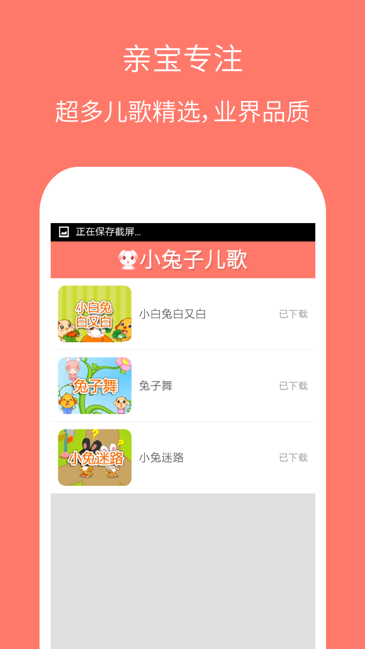 高清画质,一键下载,随身使用,欢乐不间断;支持离线播放功能,没有网络也能享受高清儿歌体验。