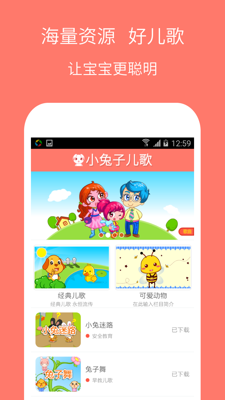 儿歌大全,歌单模式,精心推荐,找歌不用愁;智能推荐系统根据宝宝喜好自动匹配适合的儿歌内容。