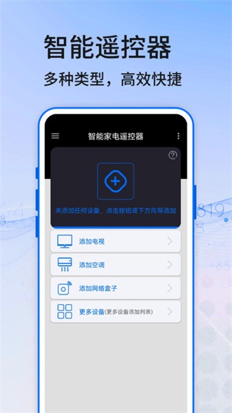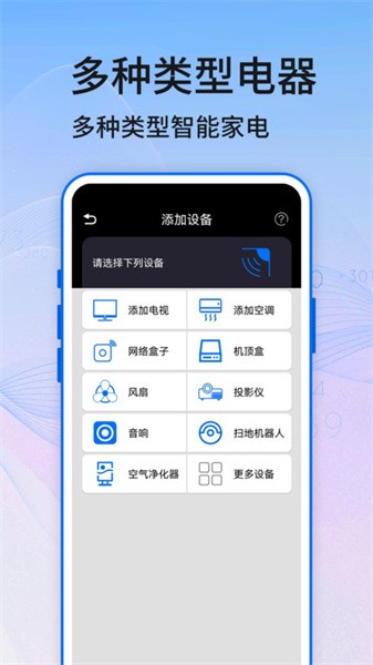 智能家电遥控器app是一款革命性的手机应用程序,专为现代智能家居生活设计。通过这款应用,用户可以将智能手机变身为万能遥控器,轻松控制家中的各类电器设备。无论是空调、电视、机顶盒还是投影仪,只需简单操作即可实现精准控制。应用采用先进的拍照识别技术,能够智能识别遥控器型号,让用户摆脱传统遥控器的束缚。界面简洁直观,操作便捷流畅,让您享受科技带来的便利生活体验。