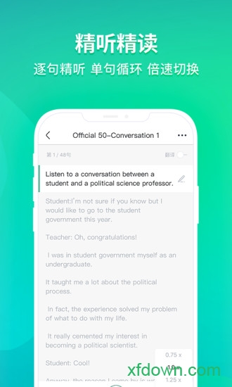 精选上千小时核心听力素材,涵盖学术讲座、校园对话等各类场景。支持0.5-2.0倍速自由调节,单句循环播放功能让您反复研磨难点。智能语音识别技术可实时评估发音准确度,配合专业听力技巧指导,助您快速突破听力瓶颈。