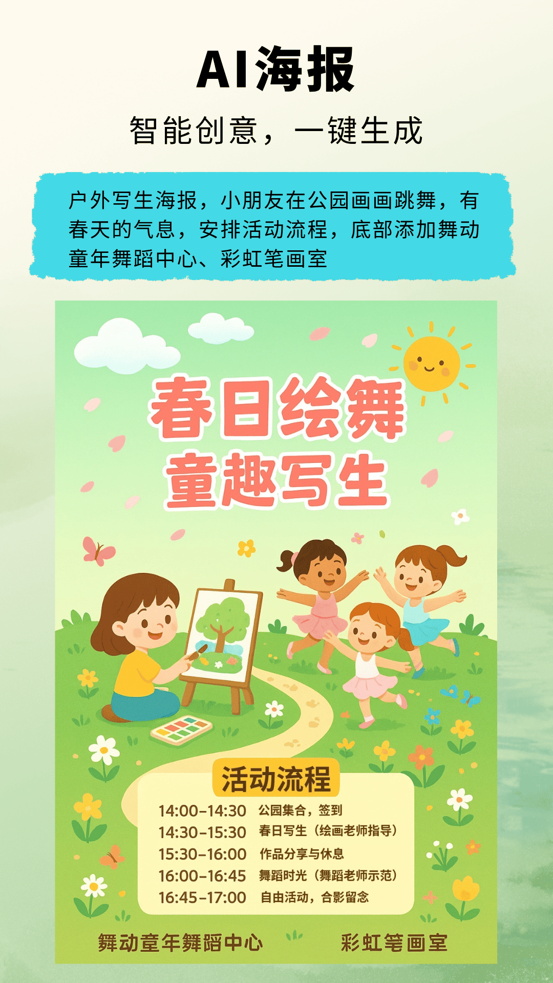 一键生成创意海报,画面触手可及。我们的AI技术能够智能分析您的需求,在几秒钟内产出专业级设计作品。无论是电商促销还是活动宣传,都能找到合适的模板。系统支持多种格式导出,满足不同场景的使用需求。