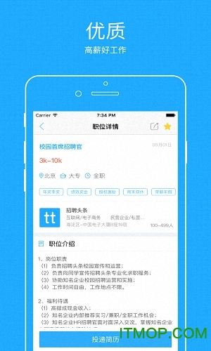 招聘头条是一款功能强大、专业可靠的手机招聘软件,致力于为企业与求职者搭建高效便捷的沟通桥梁。无论您是急需招聘优秀人才的企业HR,还是正在寻找理想工作的求职者,这款软件都能满足您的需求。它拥有智能化的筛选和查找功能,可帮助您快速匹配到最合适的岗位或候选人,大幅提升招聘效率。平台所有信息均经过严格审核,确保真实可靠,让您用得放心。现在就前往IT猫扑下载体验吧,开启您的高效招聘之旅!