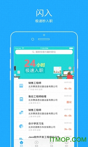 首页新增500强企业专区,以及全职/兼职快速入口,方便用户快速找到目标岗位。