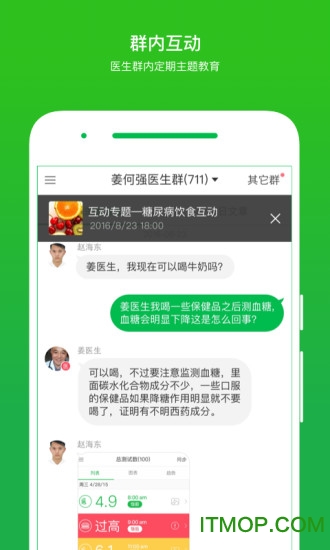 以医生主导的群组为核心,每周开展1小时的主题互动讨论。患者可以根据当期主题提出个性化问题,医生将针对性地解答疑问,并对上传的血糖报告进行专业分析和指导。