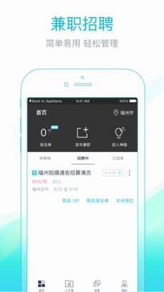 兼职管理:提供完整的用工管理工具,包括排班、考勤、绩效等实用功能,操作界面简洁直观。兼职招聘:依托庞大的简历数据库和智能筛选系统,帮助企业快速锁定目标人才,大幅提升招聘效率。兼职服务:由资深HR专家组成的服务团队,为企业提供从岗位分析到人才推荐的全程专业指导,确保招聘质量。