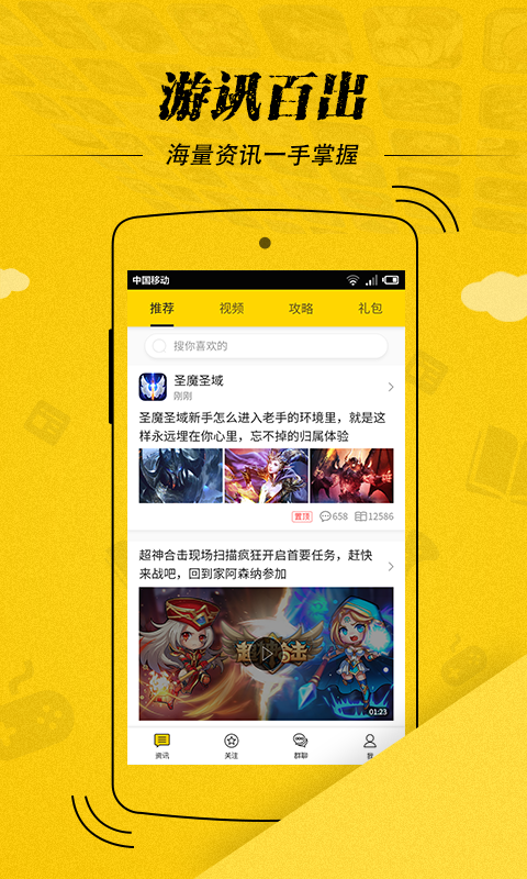 自动识别手机中的各类热门手游,自动建立标准专区,最新资讯攻略一网打尽。系统会智能分析你的游戏偏好,为你推荐最适合的游戏内容和社区话题,让每次打开APP都有新发现。